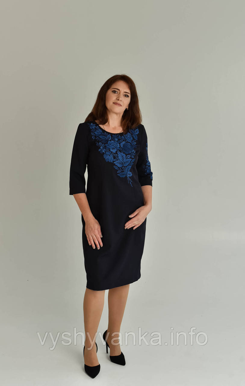 Сукня жіноча темно-синя з вишивкою ,арт. 4572 батал